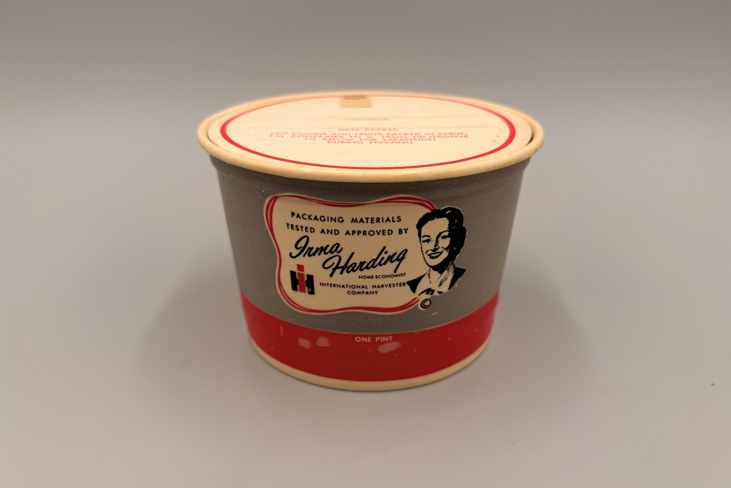 Kartonbecher „Irma Harding“ mit Deckel, ca. 1950